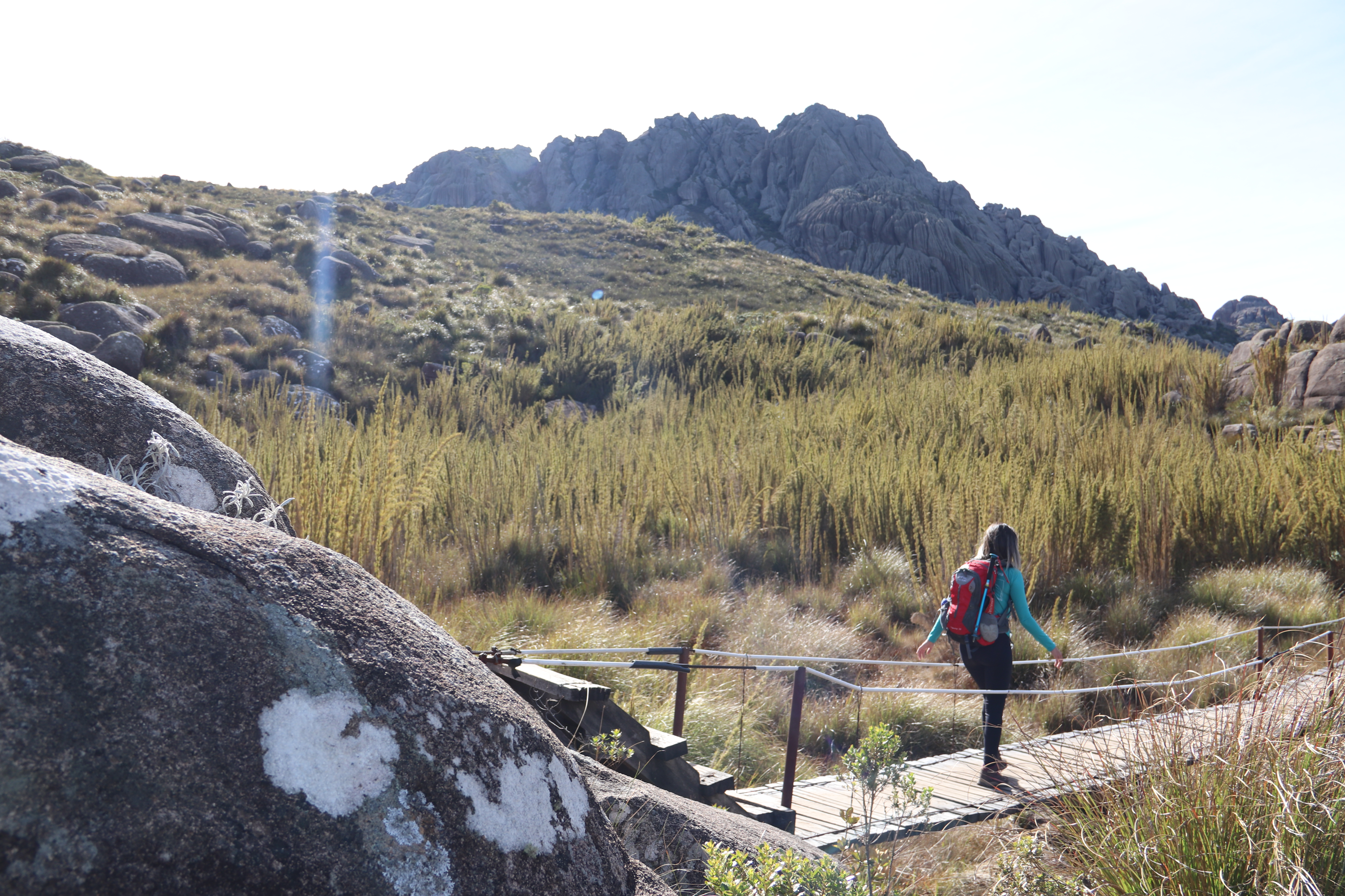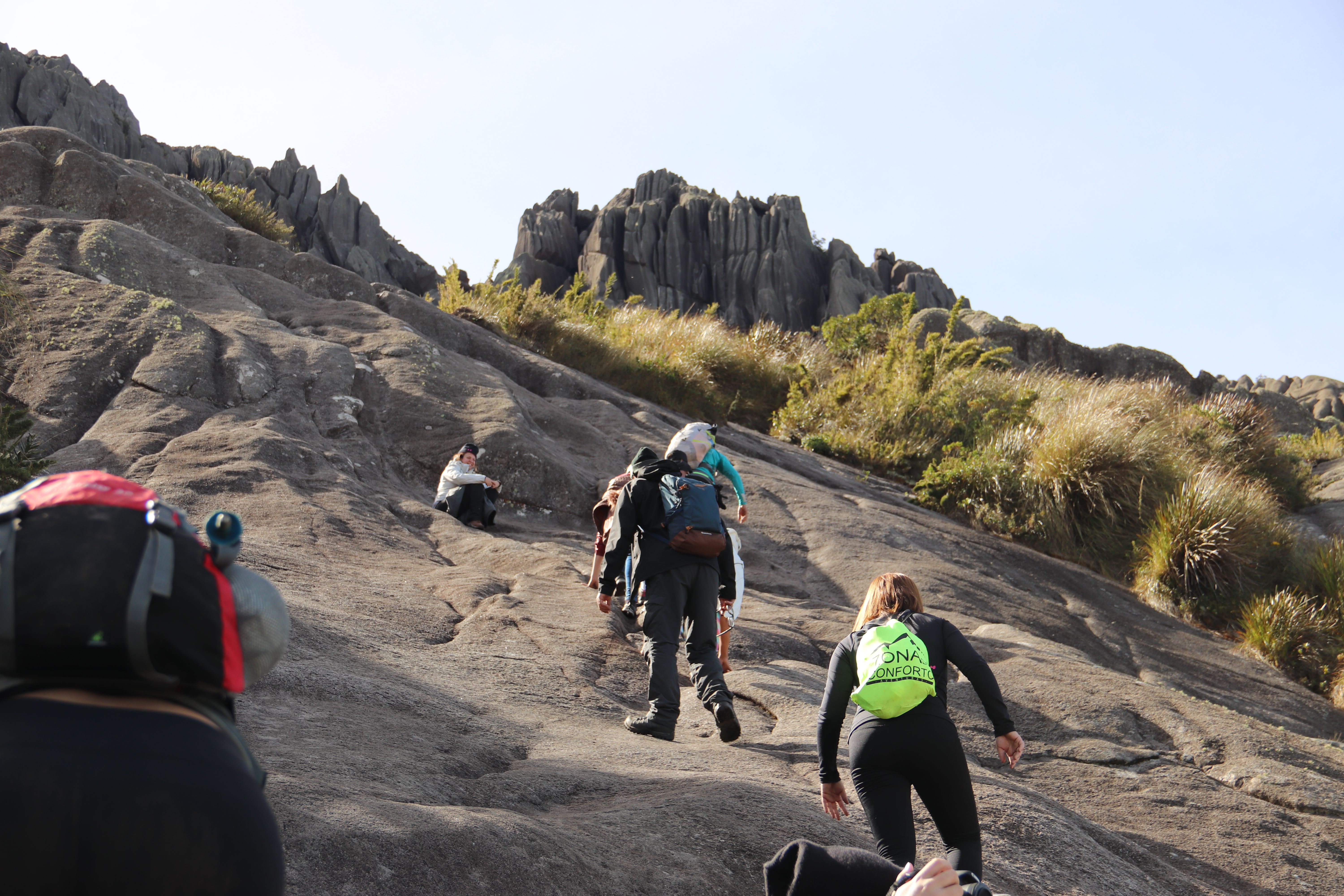 Diferente de outros roteiros, a subida das Prateleiras exige técnica de escalaminhada (scrambling) em trechos expostos, superando fendas e blocos de pedra.